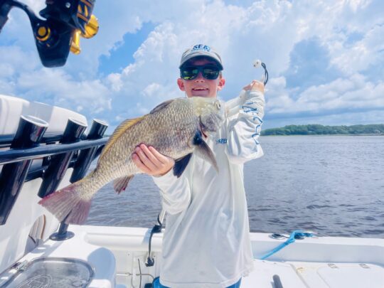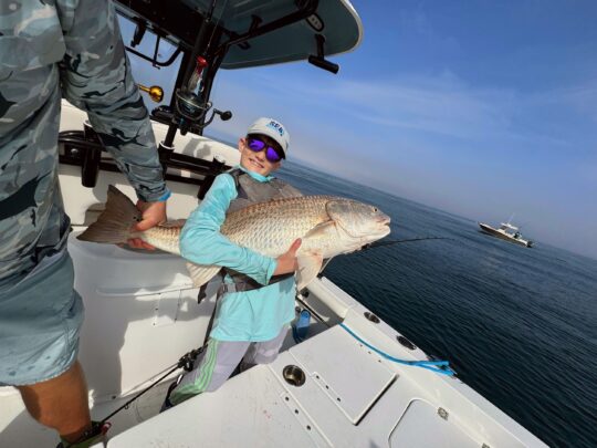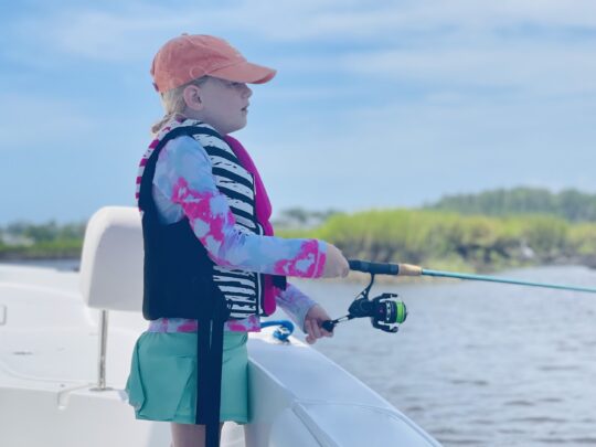 Take your kid fishing, along with up to three (3) guests, for an introductory sea-perience (fishing, boating, and sight-seeing) that keeps you within sight of land (inshore and up to as far as 1 mile offshore). Though, we tend to stay inshore with parties greater than four (4) people due to safety precautions, depending on child age.
